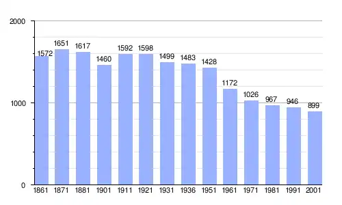 Gráfica de evolución demográfica de Murello entre 1861 y 2001 |