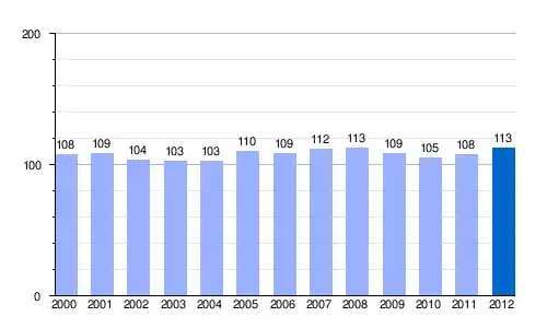 Gráfica de evolución demográfica de Murias de Rechivaldo[2] entre 2000 y 2012 |