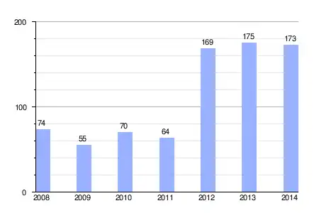 Gráfica de evolución de la deuda viva del ayuntamiento entre 2008 y 2014 |