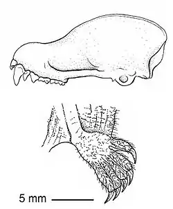 ![]() Cráneo e inserción del plagiopatagio de Murina harrisoni. | ||