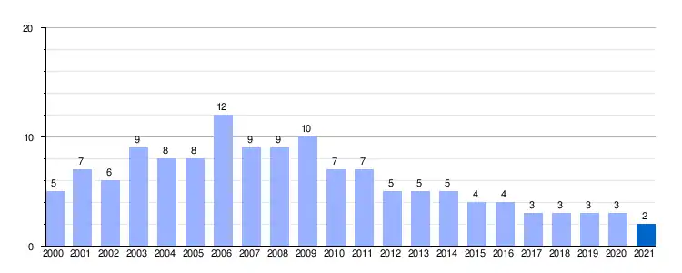 Gráfica de evolución demográfica de Murita entre 2000 y 2021