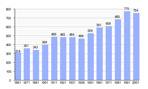 Gráfica de evolución demográfica de Muros entre 1861 y 2001 |