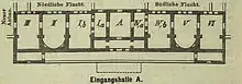 El plano original del arquitecto Ludwig Lange fue modificado posteriormente por Panages Kalkos, que fue el principal arquitecto, Harmodios Vlachos y Ernst Ziller. En la parte frontal del edificio hay un gran jardín de estilo neoclásico decorado con estatuas.[3]
