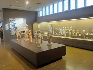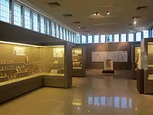 En la antesala del museo se expone la historia de las excavaciones en el área y la restauración de la estoa del santuario.