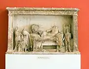 Entre los objetos de la antigua Neápolis se encuentran una serie de elementos arquitectónicos como columnas jónicas del siglo V a. C., y capiteles, además de ofrendas votivas, que provienen del templo de la diosa Pártenos, que era la principal de la ciudad.