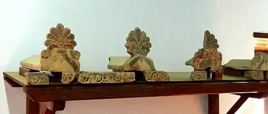 - Piezas arquitectónicas del techo de un antiguo templo.