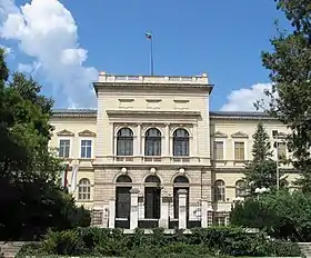 El edificio fue construido originalmente para ser una escuela secundaria para niñas entre 1892-1898 después del diseño del famoso arquitecto búlgaro Petko Momchilov. El estilo arquitectónico es «Nuevo Renacimiento». El edificio consta de un sótano y dos plantas. Casi forma un cuadrado completo e incluye un amplio patio interior. Algunas de las habitaciones y los pasillos están decorados con pinturas murales. Un corredor continuo recorre todo el edificio, que conduce a las salas de exhibición.[1]