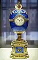 En total, hay quince huevos Fabergé exhibidos en la Sala Azul del Palacio Naryshkin-Shuvalov, así como la sorpresa del perdido Huevo Malva de 1897: tres marcos en forma de corazón con los retratos del Zar Nicolás II, Alexandra Fiodórovna y la Gran Duquesa Olga.[10][11]