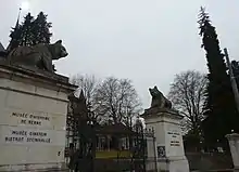 Sobre la entrada del museo hay un mosaico de vidrio, "La edad de la historia", con las figuras de la poesía y la historia, realizado en 1900 por el pintor suizo Léo-Paul Robert.[4]
