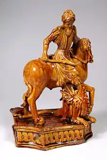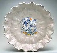 - Copa («crespina») estilo «compendiario», con figura de caballero. Faenza, taller de Virgiliotto Calamelli, penúltimo cuarto del siglo XVI.