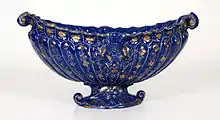 Hay excelentes ejemplos de objetos en azul lapislázuli, de gusto excéntrico y refinado y enriquecida la plástica de las formas con máscaras, esfinges aladas y patas de león, como en la cerámica del tipo «compendiario». Esta producción se inspiró en la orfebrería de finales del renacimiento y en la sala dedicada a ello del museo, se puede admirar un refrescador del que se conoce uno gemelo en la colección del Museo del Hermitage,[32] que forma parte del famoso servicio encargado por el cardenal Alessandro Farnese (1520-1589).[33]