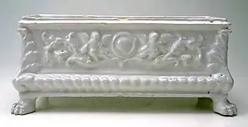 - Pequeña urna con putti alados y decorado en relieve. Faenza, segunda mitad del siglo XVI.