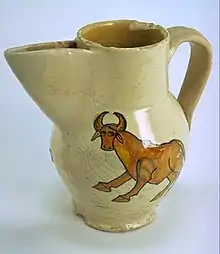 - Jarra decorada con la pintura de un pájaro. Faenza, siglo XIV.