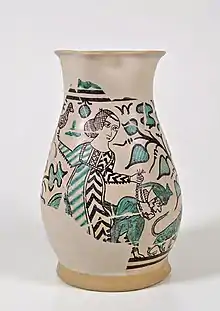 Interesante es la recuperación, a finales del siglo XIV, donde se toman los temas clásicos legendarios. Como testimonio se puede observar en una jarra con la decoración de «Aristóteles cabalgado por Filis», con una reminiscencia difusa durante esa época de la supremacía de la mujer sobre el hombre.[8][nota 2]