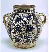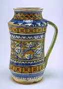 - Jarra con el motivo de la hoja «rizada». Familia gótico florido. Faenza fin del siglo XV.