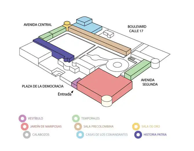 Presenta una síntesis del desarrollo de Costa Rica, desde la llegada de los españoles hasta la actualidad. Fotografías, dibujos y objetos históricos rememoran la época colonial, la independencia, el aporte social y económico del café, el banano y el ferrocarril, entre otros temas.