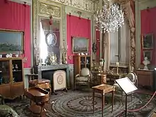 En el gran salón, bajo la mirada de Madame du Molay de Élisabeth Vigée-Lebrun, y en el salón Huet —que debe su nombre a las Escenas campestres de Jean-Baptiste Huet— hay exquisitos muebles, como escritorios cilíndricos, mesas, cómodas y bonheurs du jour, firmados por los más grandes ebanistas de le época, como Jean-François Oeben, J.-B. Sené, Bernard Van Riesen Burgh (B.V.R.B.) o Jean-Henri Riesener. En el pequeño despacho, con cortinas de seda carmesí, está expuesto un retrato de Jacques Necker y un busto alegórico del Verano de Jean-Antoine Houdon.
