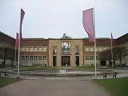 El complejo de edificios Ehrenhof fue construido en 1925 para la exposición "GeSoLei (abreviatura del alemán, Gesundheitspflege, soziale Fürsorge und Leibesübungen [salud, atención social y deporte"]. Los planes de construcción del edificio corresponden al arquitecto Wilhelm Kreis.