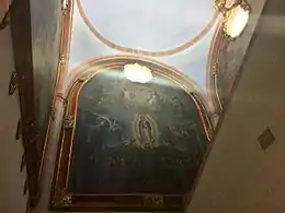 Aquí se aprecian los retratos de los fundadores del Colegio de Guadalupe, los frailes José Guerra, Antonio Margil de Jesús y Pedro de la Concepción y Urtiaga.[3]