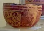 Este artefacto (número de catálogo PSPA-507) es un cuenco cerámico planco de la variedad Saxche del tipo policromo Saxche-Naranja, perteneciendo al grupo cerámico Palmar-Danta.[10] Fue excavado del Grupo 9 en Suk Che y es asociado con un entierro. El cuenco ha sido datado al período clásico tardío.