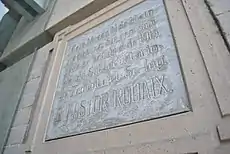 Placa conmemorativa: "Este Museo N. de Historia Natural fue reorganizado en octubre de 1915 siendo Subsecretario de Fomento el Sr. Ing. D. Pastor Rouiax"