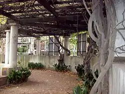En la esquina de Juramento y Cuba, puede observarse una pérgola con una glicina de más de un siglo de vida.