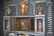 - La Virgen Mestiza, imagen de madera policromada, del siglo XVIII, con marcadas facciones nativas, que perteneció a la Colección de Doña Josefina Pla.