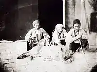 - Hombres con un león vivo en Irán. Fotografía de Antoin Sevruguin (década de 1830-1933)