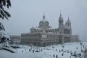 También conocida como la Santa Iglesia Catedral Metropolitana de Santa María la Real de la Almudena, se trata de una catedral dedicada al culto católico. A su vez el edificio en cuestión hace de museo y sede episcopal de Madrid. Tratándose del principal templo de la Archidiócesis de Madrid, sede del arzobispado de Madrid e incluso del capítulo metropolitano, presenta unas dimensiones considerablemente monumentales; con una altura máxima de 73 metros y una longitud de 102 metros. El edificio fue construido en base a diferentes estilos arquitectónicos. Mientras que el interior presenta un estilo neogótico, el exterior fue pensado para imitar un neoclásico.