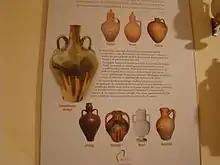 En las gradas de la muestra permanente se alinean ejemplares de los tipos más extendidos con su forma de "huevo invertido con altos hombros donde apoyan las asas", y las típicas vasijas “anchas de caderas” habituales en la Meseta ibérica, el Valle del Ebro, Extremadura, Andalucía Occidental y el sur de Portugal. No faltan cántaros ovoides más esbeltos como los fabricados tradicionalmente en el Levante español, desde Cataluña a Jaén y Granada, incluidas las islas Baleares.[4]