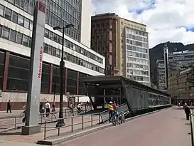 La estación sencilla Museo del Oro hace parte del sistema de transporte masivo de Bogotá llamado TransMilenio inaugurado en el año 2000.