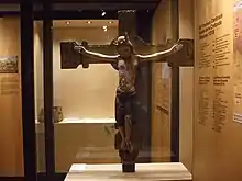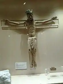 - El Cristo de Casarill (procedente de la iglesia de Santo Tomás de Casarill): es una talla de madera policromada de finales del siglo XII e inicios del siglo XIII de manufactura aranesa. Formato por tres piezas de madera engargoladas que conforman el cabo, el cuerpo y las piernas, representa un cristo coronado (con una corona donde se representa la flor de lis) o en majestad de 103 x 103 x 15 cm, de cara ancha, nariz fina, ojos grandes, boca pequeña y barba generosa, que viste con una sábana desde la cintura hasta las rodillas. En el torso desnudo se aprecia el trabajo minucioso de los aspectos anatómicos, sobre todo en la zona de los hombros. La policromía actual no es la originaria, sino que data del siglo XIV.[8] El Cristo se presenta fijado sobre una cruz del siglo XIX, época a la cual seguramente correspondía la policromía anterior a la restauración llevada a cabo por el Centro de Restauración de Bienes Muebles de Cataluña en 2012, donde se pudo dejar a la vista la policromía subyacente del siglo XV. La pieza fue presentada en la exposición internacional de arte románico de Barcelona en 1961.[9]