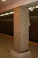 - El nombre de la estación tras las vías. El interior de las letras está decorado con jeroglíficos egipcios.