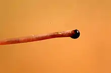 Cuando se corta un tallo de la seta, este contiene una savia color rojo púrpura y da la sensación de que sangrara.