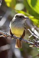 - Esta obra contiene una traducción derivada de «Galapagos Flycatcher» de Wikipedia en inglés, publicada por sus editores bajo la Licencia de documentación libre de GNU y la Licencia Creative Commons Atribución-CompartirIgual 3.0 Unported.