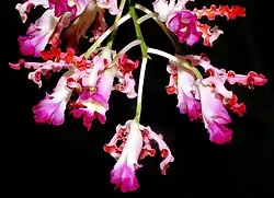 La flor de cacho (Myrmecophila tibicinis) es una orquídea del género Myrmecophila.[1] Fue descrita por Bateman en 1838 como Epidendrum tibicinis y asignada al género[2] Myrmecophila Por Rolfe en 1917.[3] Habita en bosque caducifolio seco en elevaciones de 300 a 600 metros sobre el nivel del mar. Es epífita y vive sobre troncos y ramas principales en Belice, Costa Rica, Guatemala, Honduras, Venezuela y Colombia.[4] El pseudobulbo es grande (45 cm o 18 pulgadas) y está siempre habitado por hormigas que viven en el pseudobulbo y le aportan nutrientes adicionales con sus desechos.[4][5] Puede confundirse con M. brysiana pero difiere en tener una flor de color magenta más grande y una columna más grande mientras M brysiana es más pequeña, con flores amarillas.[6]
