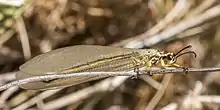 Los mirmeleóntidos (Myrmeleontidae) son una familia de insectos del orden Neuroptera, conocidos como "hormigas león". Son superficialmente parecidas a libélulas, pero se diferencian por sus robustas antenas claviformes.[2]