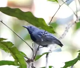 ![]() Hormiguerito alilargo (macho) (Myrmotherula longipennis) en la Floresta Nacional de Carajás, estado de Pará, Brasil. | ||