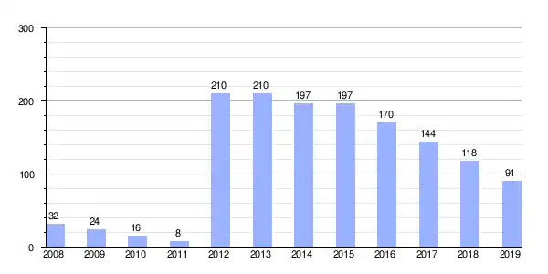 Gráfica de evolución de Deuda viva del Ayuntamiento de Nívar entre 2008 y 2019 |