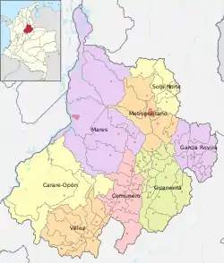 ![]() En amarillo claro el núcleo de desarrollo provincial de Carare Opón | ||