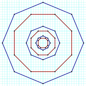 forman octógonos aproximados en los que los vértices están casi igualmente alejados del origen y forman ángulos uniformes.