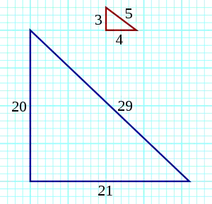 - (4,3,5), (20,21,29), (120,119,169), (696,697,985), ...