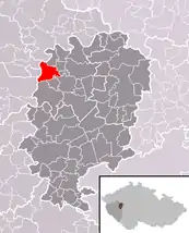 Se encuentra ubicada al norte de la región, en la cuenca hidrográfica del río Berounka —un afluente izquierdo del río Moldava que, a su vez, lo es del Elba—, y cerca de la frontera con la región de Bohemia Central.[1]
