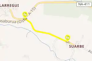 La NA-4115 es una carretera local perteneciente a la Red de Carreteras de Navarra que se inicia en PK 12,80 de NA-411 y termina en Suarbe. Tiene una longitud de 0,58 kilómetros.[1]