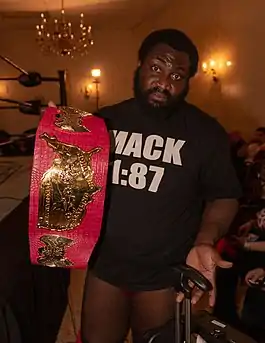 ![]() El excampeón Willie Mack con el diseño actual del campeonato. | |||||||||