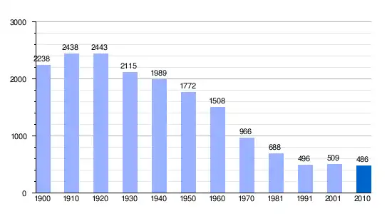 Población de derecho (1900-1991) o población residente (2001) según los censos de población del INE. Población según el padrón municipal de 2010 del INE. |