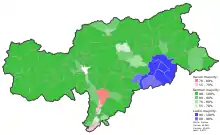 Algunos partidos políticos que abogan por la secesión del Tirol del Sur han alcanzado una cierta prominencia tanto a nivel local como nacional, entre ellos la Libertad Sudtirolesa, Die Freiheitlichen y la Unión de Ciudadanos del Tirol del Sur.[9] Estos partidos abarcan 10 de los 35 escaños del Consejo Provincial.