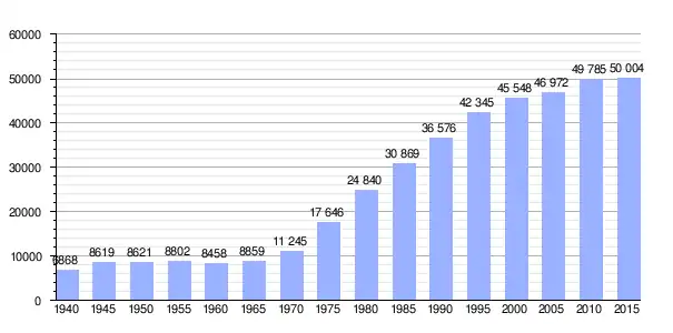 Gráfica de evolución demográfica de Nakagawa entre 1940 y 2015 |