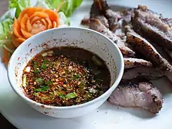 Nam chim thale (en tailandés, น้ำจิ้มทะเล ) es una salsa básica hecha con ajo, salsa de pescado, jugo de lima, azúcar y chiles, generalmente se come con mariscos a la parrilla o al vapor.[3]