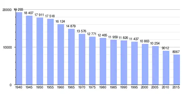 Según los datos del censo japonés, la población de Nanbu ha disminuido constantemente en los últimos 70 años.